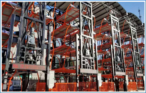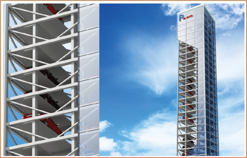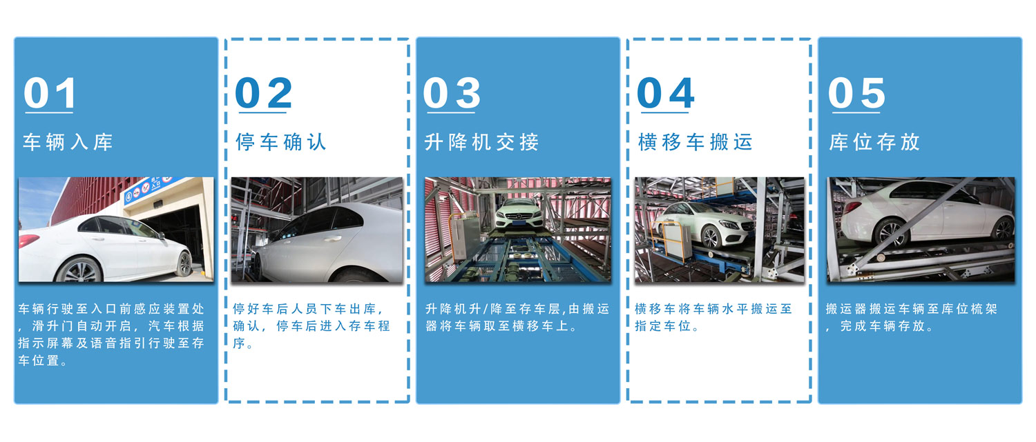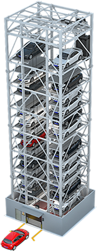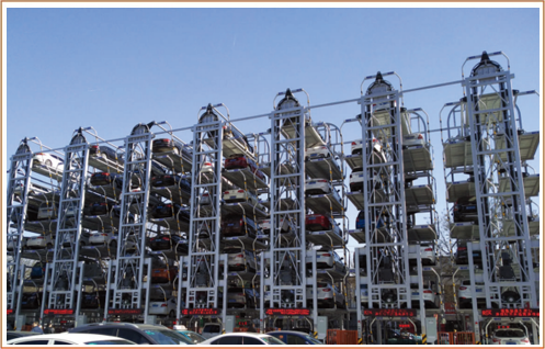 垂直升降類機械式停車設備亦可稱之為“塔庫”,主要通過升降裝置的升降和裝在升降裝置上的智能搬運器將車輛搬運至固定車位上,從而實現(xiàn)車輛的存取。