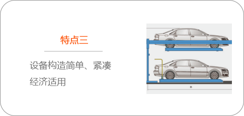 簡易升降類停車設備在各類車庫中具有停車密度高、對場地要求低、噪聲小、結構簡單、使用方便、出車速度快、地面無遮擋等諸多優(yōu)點,使地面使用效率大大增加,有限的空間可成倍的停放車輛。下面展示的兩層簡易升降停車設備構造簡單、緊湊,經(jīng)濟適用,采用PLC控制,多種操作方式,存取車容易,布局靈活,節(jié)能降耗,設備所需電源220v,所以不僅適用于大型車庫、停車場,也適用各個家庭用戶。